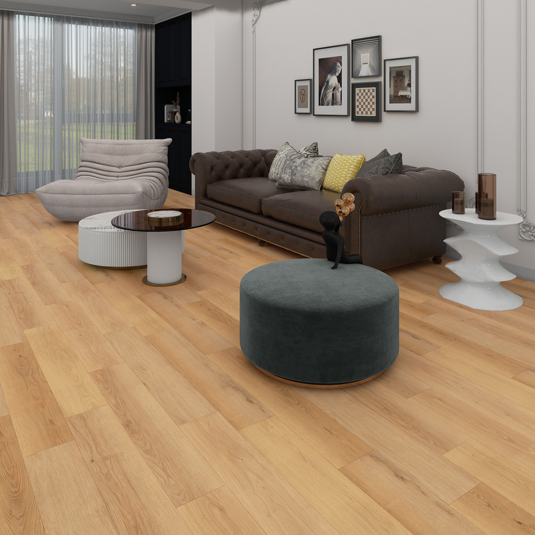 COREFLEXX planks offers a combination of aesthetic appeal, durability, ease of installation, and low maintenance, making them a versatile choice for various residential and commercial applications. Their ability to mimic natural materials at a lower cost while providing additional benefits like water resistance and comfort underfoot contributes to their popularity. This attractive flooring creates a stylish yet understated bedroom, kitchen, living area, entryway, and beyond.